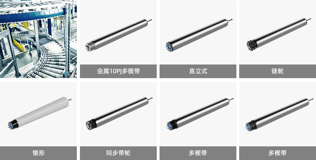 - 標準化產品:一般滾筒電機的尺寸為:300mm、400mm、500mm、800mm,p50mm、p60mm、p76mm等多種直徑。以及直通式、塑膠多楔帶、金屬多楔帶、鋼制雙鏈輪、同步帶輪等多種驅動鏈接方式,支持標準化生產制造。
